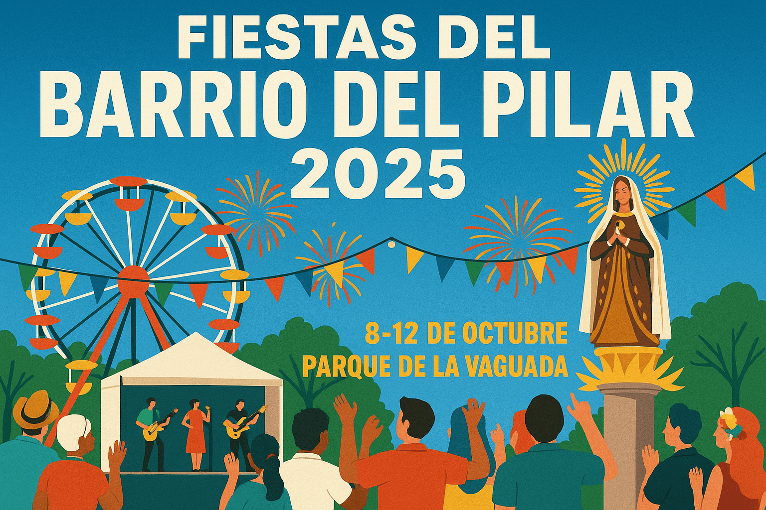 Las esperadas Fiestas del Barrio del Pilar 2025 ya están a la vuelta de la esquina. Del 8 al 12 de octubre, el norte de Madrid volverá a convertirse en uno de los epicentros de las celebraciones populares más concurridas de la ciudad. Con conciertos gratuitos, actividades familiares, feria, gastronomía y fuegos artificiales. El evento promete reunir a miles de vecinos y visitantes durante cinco días de fiesta.