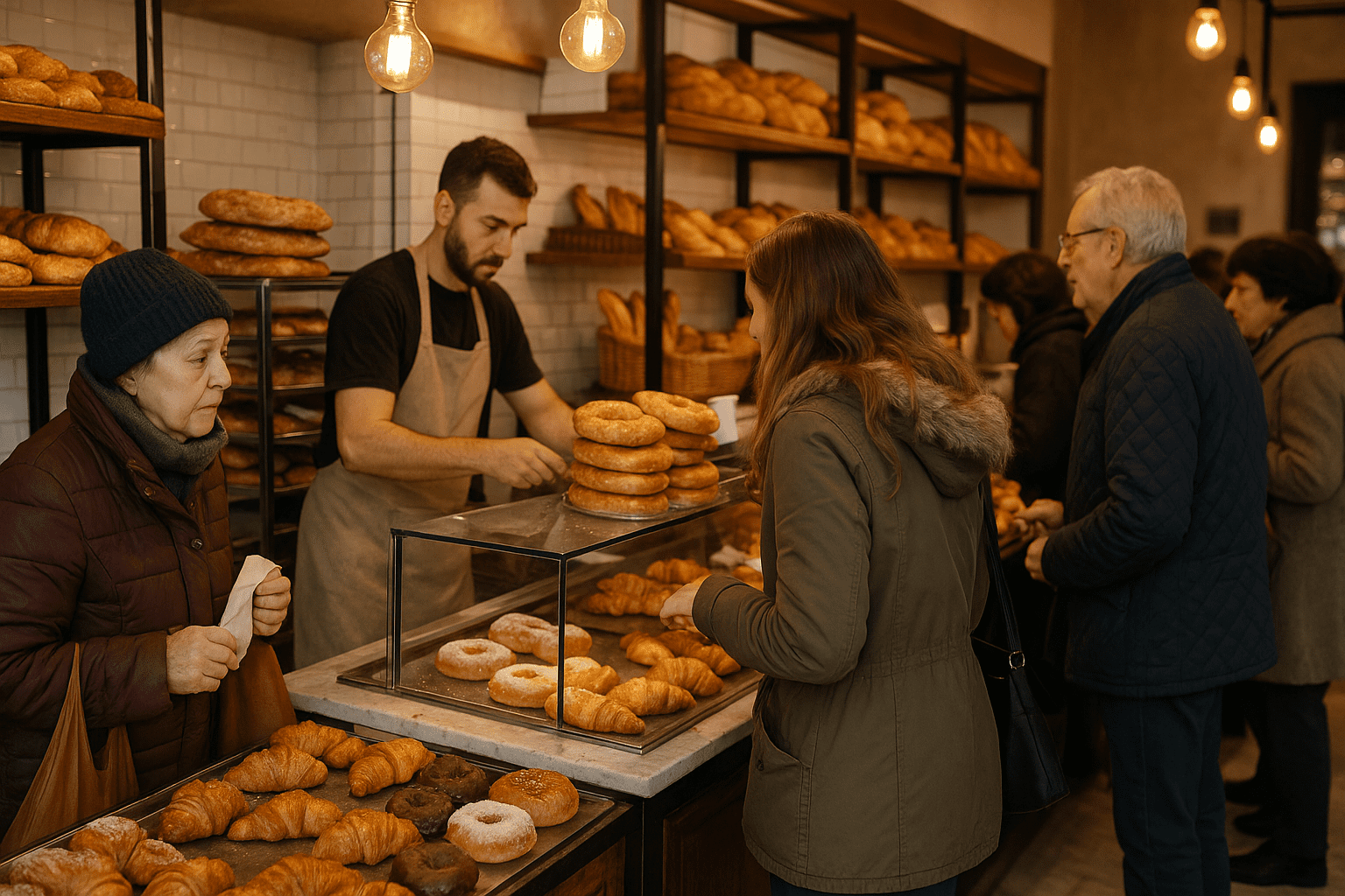 Los bares y panaderías de barrio viven su particular maratón en los últimos días del año. Mientras algunos vecinos ultiman las cenas de Nochevieja, otros hacen cola para recoger encargos de roscones, bandejas dulces o platos preparados. En cada barrio, el olor a pan recién hecho y el ambiente festivo anuncian el cierre del año.
