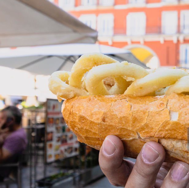 Desde finales de los años 50, La Ideal ha servido sus famosos bocatas de calamares, reconocidos por su sabor tierno y sabroso. Este bar, también cercano a la Plaza Mayor, ofrece un bocadillo generoso a un precio de alrededor de 4 euros. La clave está en el rebozado, hecho solo con harina, y en controlar el punto exacto de fritura.