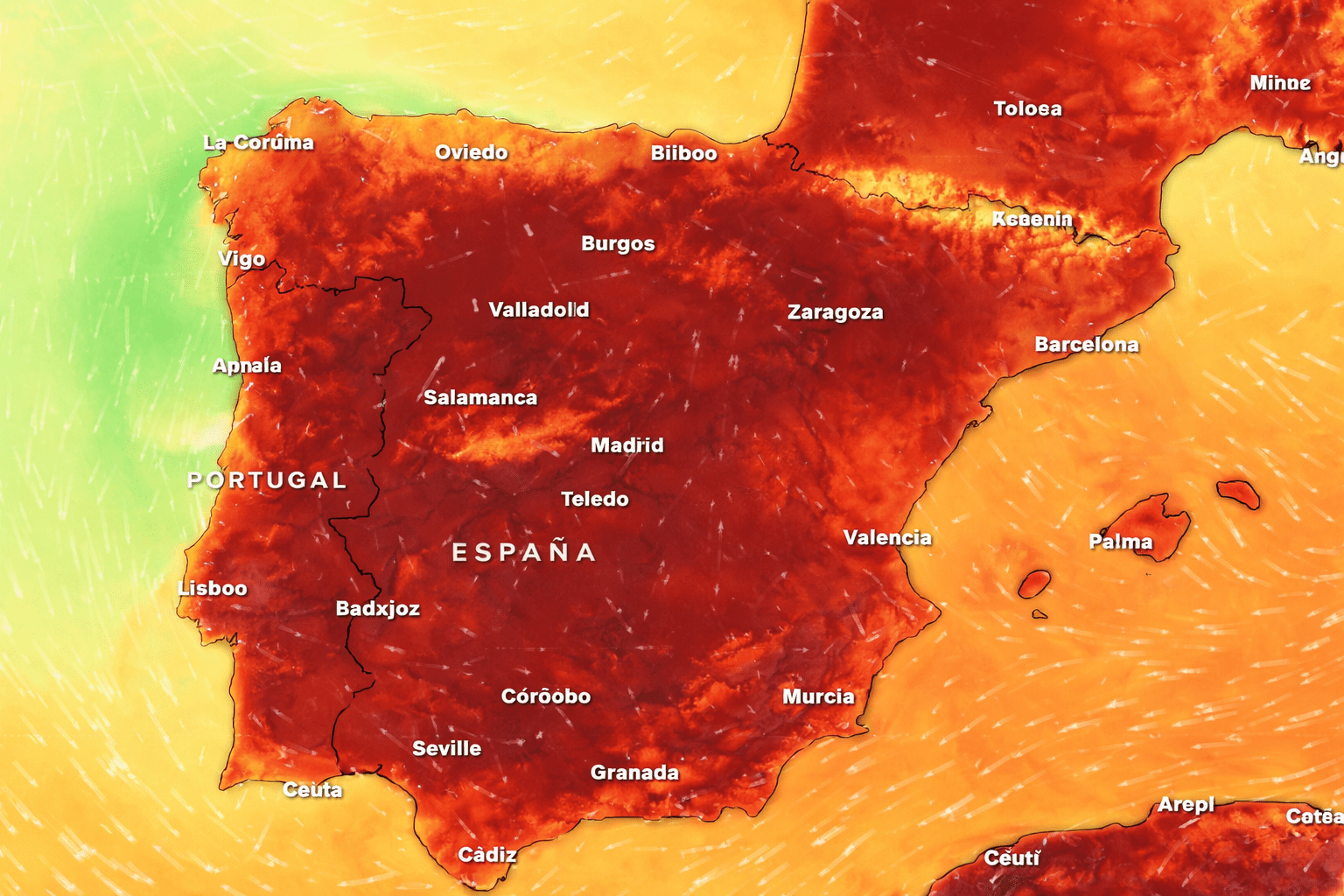 Según la previsión meteorológica, la situación responde a la formación de una baja al oeste de la Península. Ese escenario favorece la entrada de una masa de aire cálido de origen subtropical, responsable del fuerte ascenso térmico previsto para este martes.