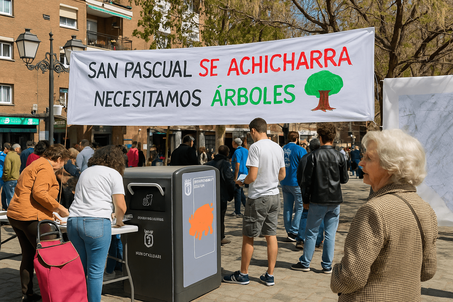 La reivindicación vecinal para plantar más árboles en San Pascual no es nueva. Desde hace más de cinco años, exigen un plan municipal de arbolado urbano para dotar al barrio de sombra y aire limpio. “Tenemos espacio de sobra en las calzadas”, señalan. Comparan su situación con la de barrios como Chamberí o Salamanca, donde incluso en calles más estrechas hay vegetación.